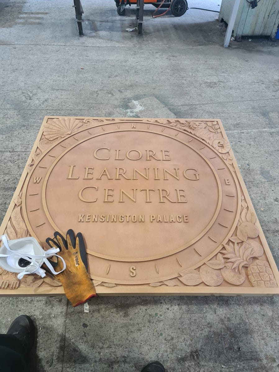 The brand new bronze casted plaque we machine polished then a BMA tone with highlighted areas to brandish detail for Leander Architectural who were commissioned to do by Kensington Palace for the new Clore Learning Centre