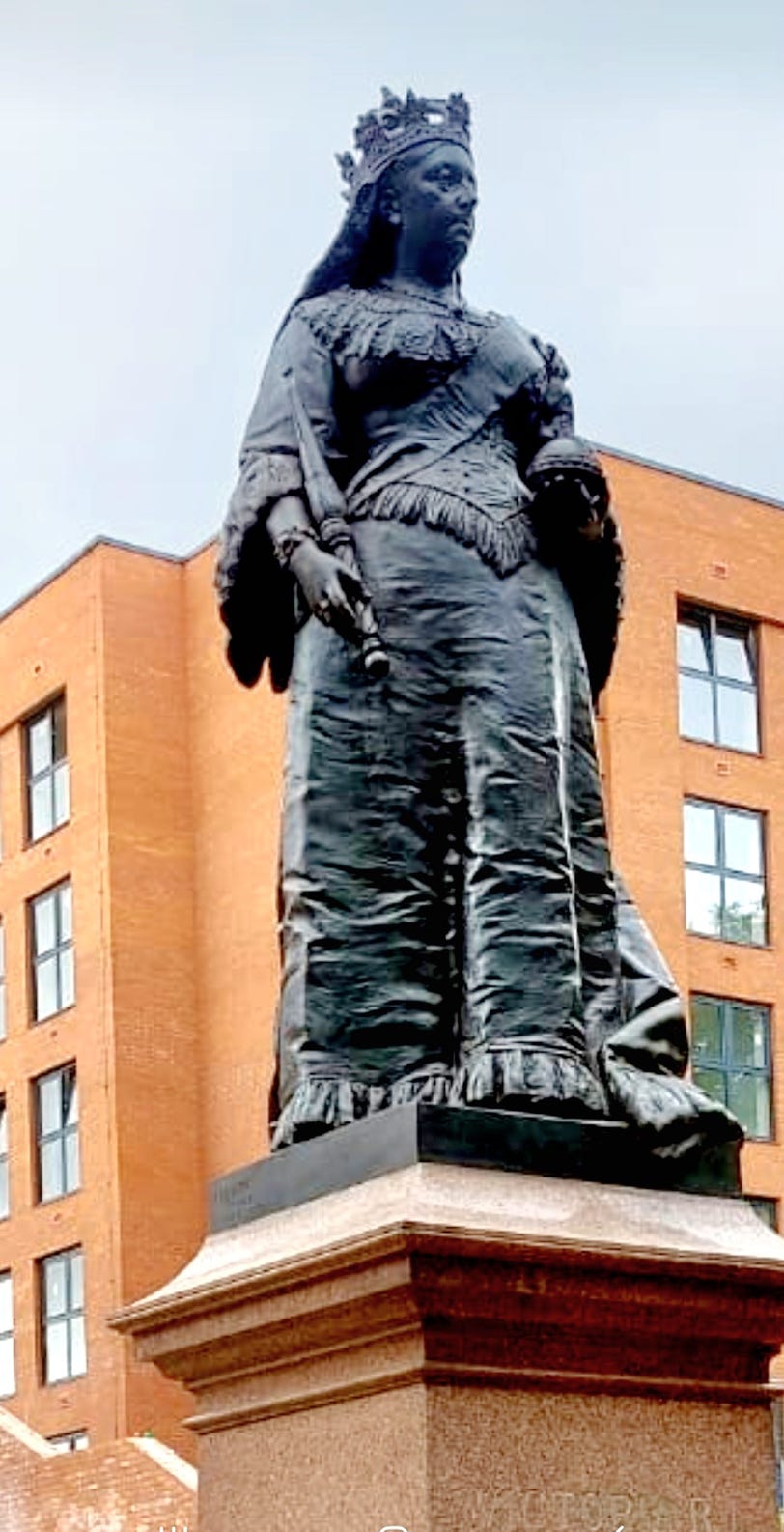 Queen Victoria Restoration and re-location in Derby at Old Nightingale hospital, with and without her sceptre. It was missing since they moved her the first time we think - we made a 3d model of it and recasted a replica in bronze then fitted and patinated to match existing aged tone and patina.