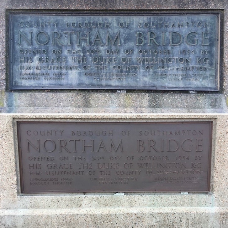 fully restore the original bronze surface to apply a BMA patination finished with a crystalline wax application and buffed to finish to its fine glory, all done by hand with heritage approved products, Stonework was cleaned then we applied a poultice to remove stubborn staining to stone.